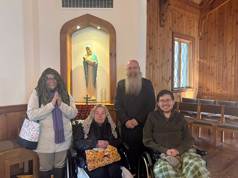 “I look forward to going to Mass,” says Isabella, who is the full-time caregiver for Mary Lou and Justin. The 40 or 50 people who attend Mass there regularly look out for each other and pray for one another, she says, and they enjoy sharing their beautiful mountain church with visitors.