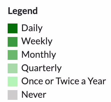 Diocesan-wide responses on questions related to the faith practices of respondents, including the following: