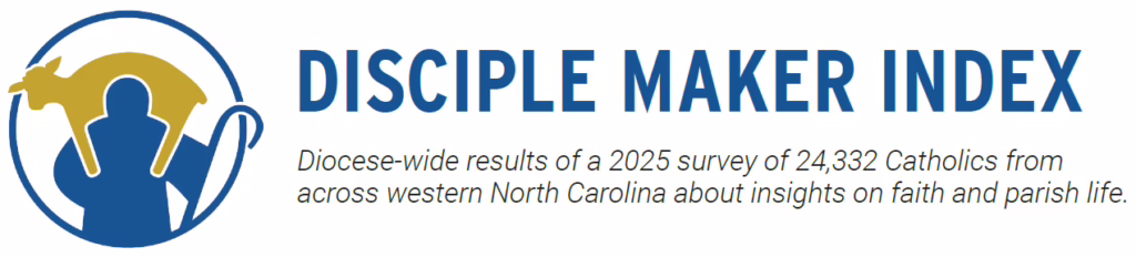 Note: The Disciple Maker Index survey, conducted in March-April 2025 at the diocese’s 93 parishes, drew responses from 24,332 people at 78 parishes and missions in the Diocese of Charlotte. While not a random or representative sample of all Catholics in the diocese, the results largely captured the views of active Catholics who regularly attend Mass and chose to participate in the 75-question survey. Data were tabulated by the Catholic Leadership Institute, which conducted the DMI at no cost as part of a future strategic plan for the diocese.